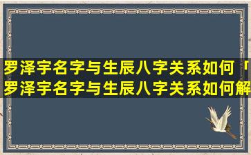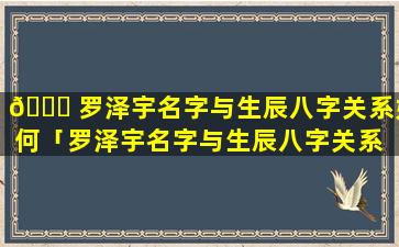 无法判断没有提供生辰八字,因此无法判断罗泽宇的名字与生 💐 辰 🐠 八字的关系。