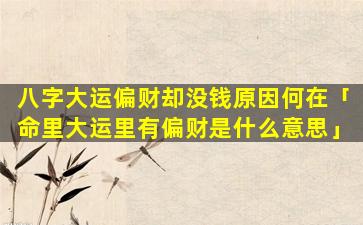 八字中大 🐦 运出现偏 🦆 财,但,实际生活中却没有钱这可能 🐟 有以下原因: