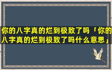 "烂"到极致是一个主观且带有强烈情绪色彩的评价,而非八字本身固有的属性八字 🌷 是。由,十 🍀 ,天,干。和十二地支组合而成每个八字都有其独特的信息和含义既有吉利的一面也有凶险的 🍀 一面
