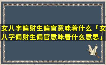 女八字 🐈 偏财生偏官的含义 🕸 :