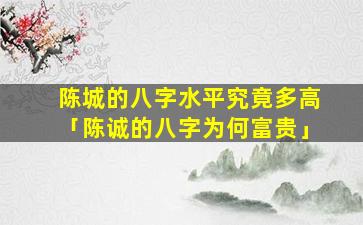 陈 🌼 城的八字水平 🍀 是个有争议的话题。一些人认为他水平很高,而。另一些人则认为他的水平不 🐱 过如此