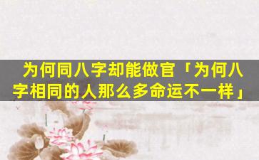 八字相同的人 🍁 可能有不同的 🐺 人生际遇,包,括是否做官原因如下: