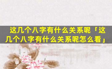 “这几个八字有什么关系呢 🌷 这”句话缺失了所指 🐦 的八字,无法提供具体的关系。