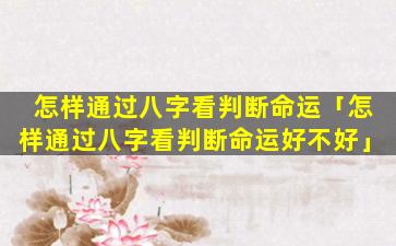 八字 🌴 判 🦉 断命运好坏