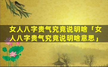 女性 🐶 八字贵 🐅 气的 🌼 具体表现