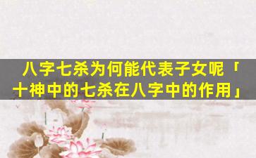 七杀代表 🦆 子女的 🦆 含义 🌷 :