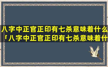 八字中正官正印有七杀 🌲 的含义 🦉 :