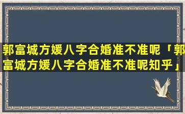 :知乎上的回答对 🕊 于郭富城和方媛的八字合婚准确性存在不同的看法,有的,认为有一定的参考价值有的则强调其不准确性。配对,结,果,也不,尽,相同。总体来看两人相配指数较高但对于婚姻幸福与否八字合婚只能作为参考并不能完全决定