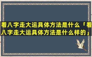看八字 🐝 走大 🐟 运具 🐒 体方法