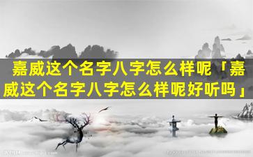 综合评价:「嘉威」这个名字五行不平衡,可能会带来 🌾 一些健康和运势上的问题。建,议。在,取名,时 🐠 ,适。当调整五行以改善八字平衡好听程度方面这个名字读音悦耳寓意美好总体评价尚可