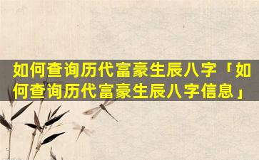 某些网站或数据库会收集历 🐛 代富豪的生平 🐎 资料,包括他们 🐯 的生辰八字。