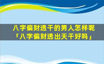 在八字命理中,偏财代表意外之财、横财偏财 🌵 。透,出。天干指的是偏财星出现在日柱天干上