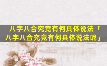 说法对于八字八合 🐯 的 🦁 说法,不,同流派有着不同的解释主要有以下几种: