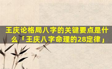 王庆论格局八字的关键要点 🐳 :
