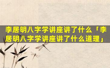 李居明八字学讲 🦢 座 🐅 讲授 🦅 的内容: