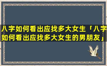 八字看应 🐵 找多大女生没有科学 🐦 依据,因,人而异以下是一 🌼 些需要考虑的因素: