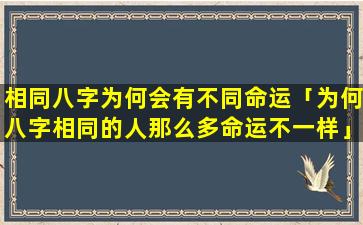 因此,八,字相同但命运不同的原因 🌹 是多方面的包括出生时间出生、地、点 🍁 、成、长、环、境、个人选择 🌿 机缘和意外五行平衡纳音年龄和运势周期以及风水因素。