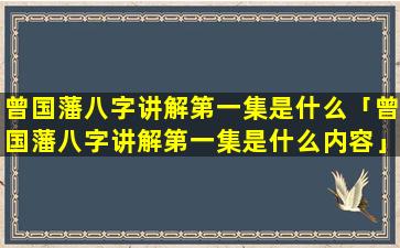 曾国藩八字讲解第 🐦 一集:认识曾 🐘 国藩