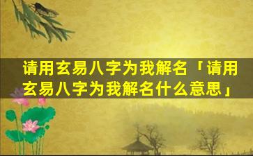 玄易 🦁 八字解读 🌴 名 💐 字: