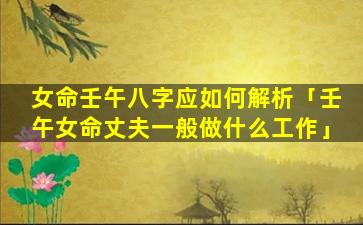壬午 🐛 日柱女命丈 🦍 夫常见 🐋 职业:
