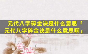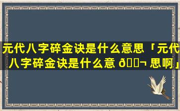 元 🐘 代八字碎金诀是一种由八个字符组成的短卦,用来占卜 🐵 吉凶祸福八个字符。分别是: