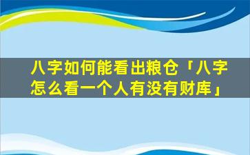 從八字看一個人糧倉(財庫)大小主要看身旺身弱 🍁 和財星的情況。