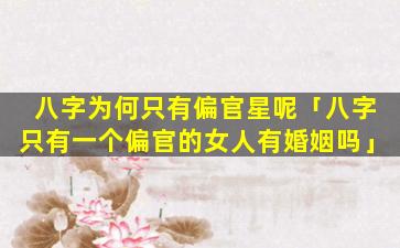 一般 🐞 来说,八,字,中只有一个偏官的女人如果偏官较弱或受制则 🦍 容易有 🐟 稳定的婚姻如果偏官。旺,盛,且。不受制则婚姻容易出现争吵矛盾甚至破裂