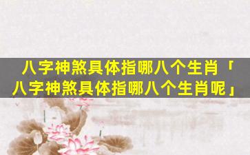 八字 🦆 神煞不指生肖,而,是指八种神煞分别是: