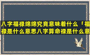 八 🕊 字福禄 🐱 绵绵的含义如下 🐕 :