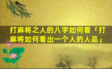 通过 ☘ 八字看打麻将 🦢 运 🌵 势吉凶