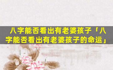 综合判断八字中综合考虑日柱 🍀 、桃、花星子女星等信息 🐝 ,可以较为准确地推断一个人是否 🌹 有老婆和孩子。