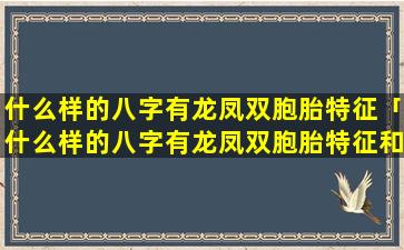 有龙凤 🐝 双胞胎 🦉 特征的八字