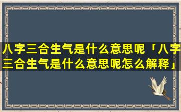 八字三合生气是指八 🌷 字中地支 🐬 出现三 🦁 合局,并且三者处于生旺的状态。