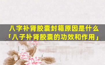 有关“八字补肾胶囊封箱”的原因,目前官方尚未发布确切信息。根,据公开资料可能 🌻 有 🐴 以下几种原因: