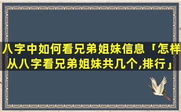 八字 🐵 看 ☘ 兄弟姐妹个数及 🕊 排行秘诀