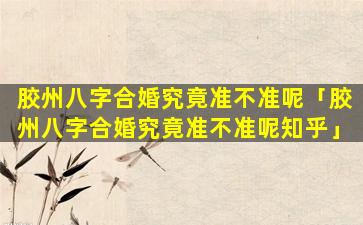 胶州八字 🪴 合婚 🐯 的准度