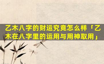乙木为阴木,喜,生金食神(丙)和(伤)官,丁为乙木的食伤可以生财。因,此食伤 🦊 。旺盛的乙 🦆 木八字财运较好