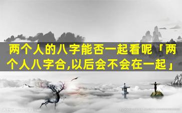 是的,两,个,人的八字可以一起看称为合婚或配婚主要分析双方 🐕 命局之间的相合程度和契合度。