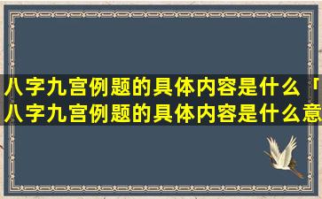 这个例题给出了一个人的出生时间和对应的八字,然后 🐬 根据八字计算出了九宫格中各个宫位的星宿。命理师可以根据这些星 🐠 宿来推断此人的性格命、运、事、业。婚姻等方面的情况