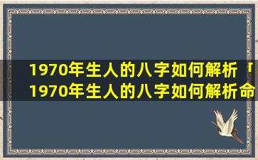 1970年 🐝 生人 🐘 的八字