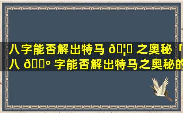 八字无法解 🌷 出特码之 ☘ 奥秘 🐺 。