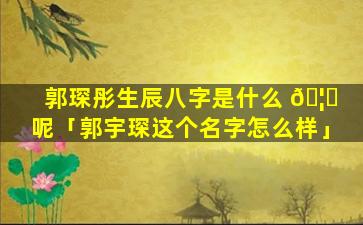 综合评价:"郭"宇琛是一个发音悦耳、寓意美好的名字,但,重名率较高缺乏个性。如,果。希望取一个更有辨识度和个性化的名字可以考虑使用一些较 🦁 少见的字或搭配不同的字组合