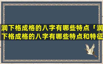 润 🌻 下格成 🐋 格的命理特征 🐦 :