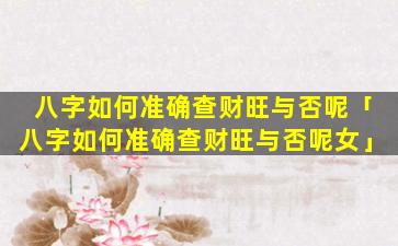 查 🌲 看 🌿 女命八 🌵 字财旺与否的方法: