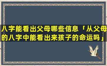根据八字理论,可,以通过 🐘 分析父母的生辰八字看出以下信息 🌴 :
