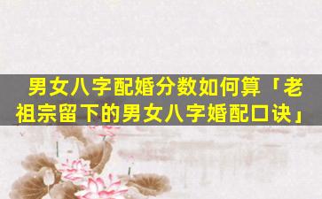 男女八字 💐 配婚 🌵 分数计算方法 🐎
