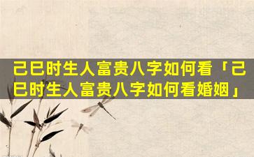 己巳时 🌷 生人富贵八字 🐳