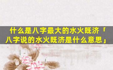 八字中 🦅 水火相济指的是五 🐈 行水 🌺 和火之间的平衡与和谐。