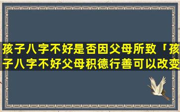 八字学观点八字学认为,人的命运是由其八字决定的八字。并,非。一,成,不。变而是可以随着时间和自身努力而改变的因此即使父母八字不好也不必过于担心 🐕 孩 🦉 子的命运