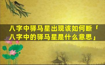 八字中 🌹 驿马星的经 🐼 验看 🐟 法